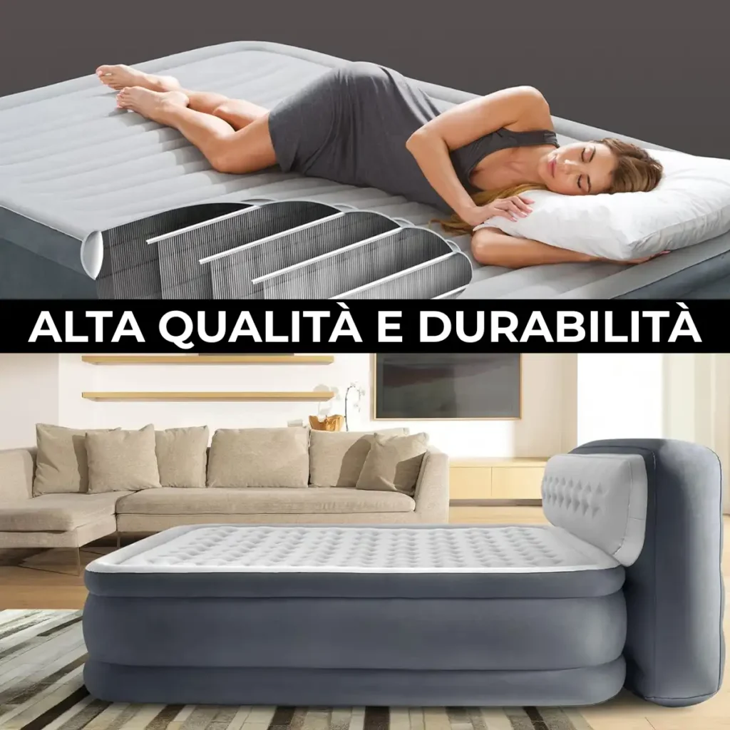 Il letto è progettato per sopportare usura e sollecitazioni nel tempo. Il materiale è rinforzato per resistere a forature accidentali, graffi e abrasioni, garantendo una tenuta d’aria perfetta anche dopo un uso prolungato.