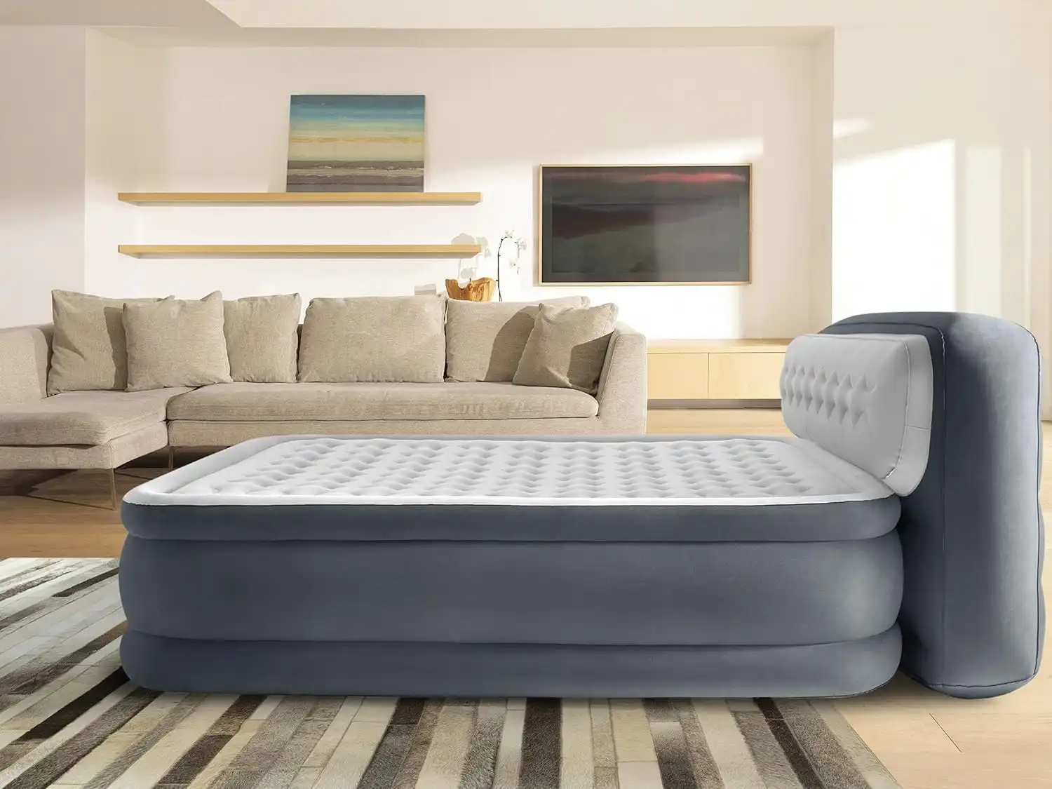 Una volta sgonfiato, si richiude facilmente in una borsa compatta con ruote, perfetta per il trasporto e lo stoccaggio. Si adatta a lenzuola standard singole e supporta fino a 300 kg.